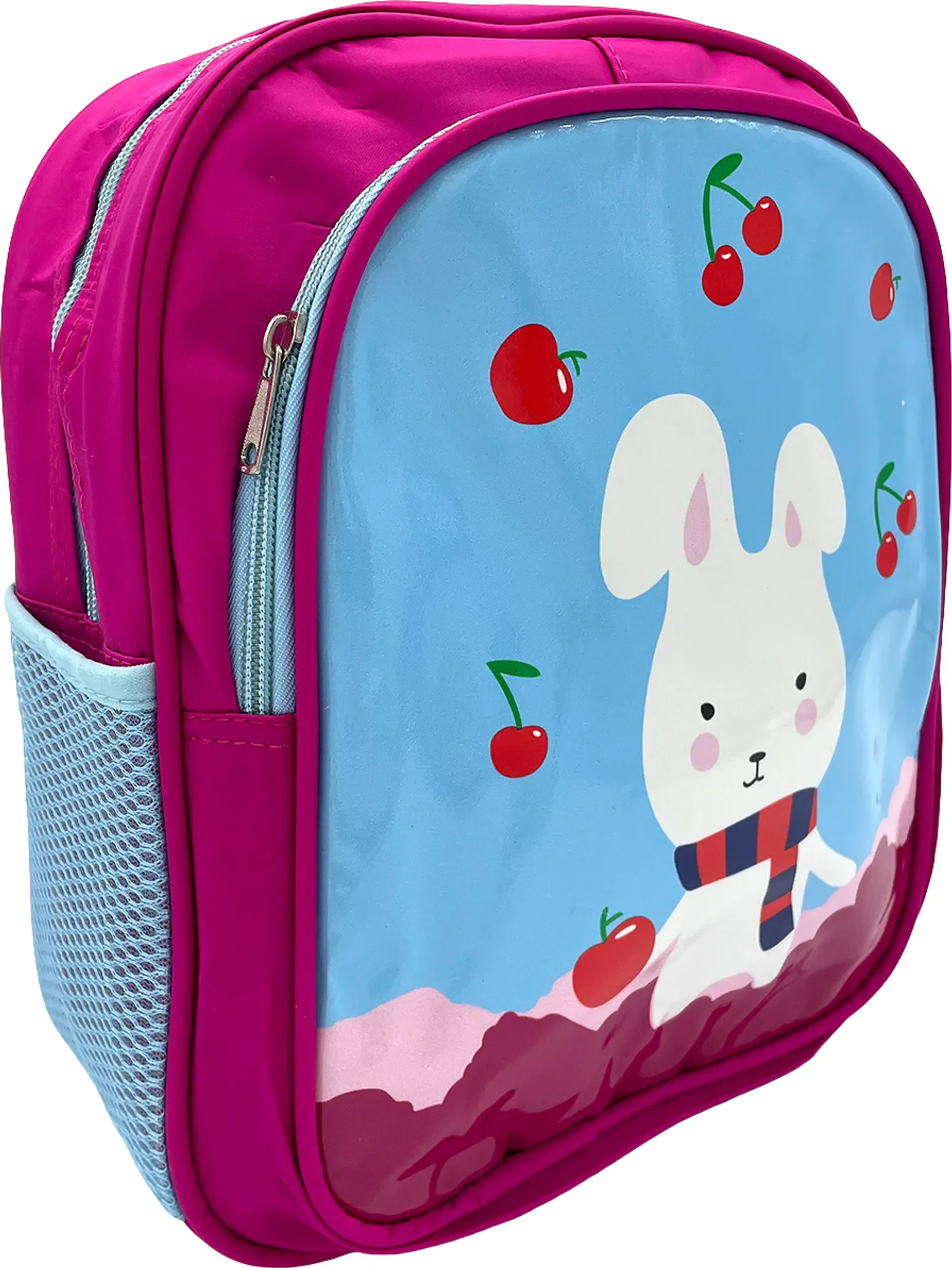 Dank gepolstertem Rücken und weichen Mesh-Schultergurten sitzt der Rucksack bequem und lässt sich ideal an kleine Körper anpassen. Zwei praktische Fächer sorgen für Übersicht: ein Hauptfach für größere Dinge sowie ein kleines Frontfach für Kleinigkeiten. Die seitlichen Netztaschen bieten Platz für Trinkflaschen.