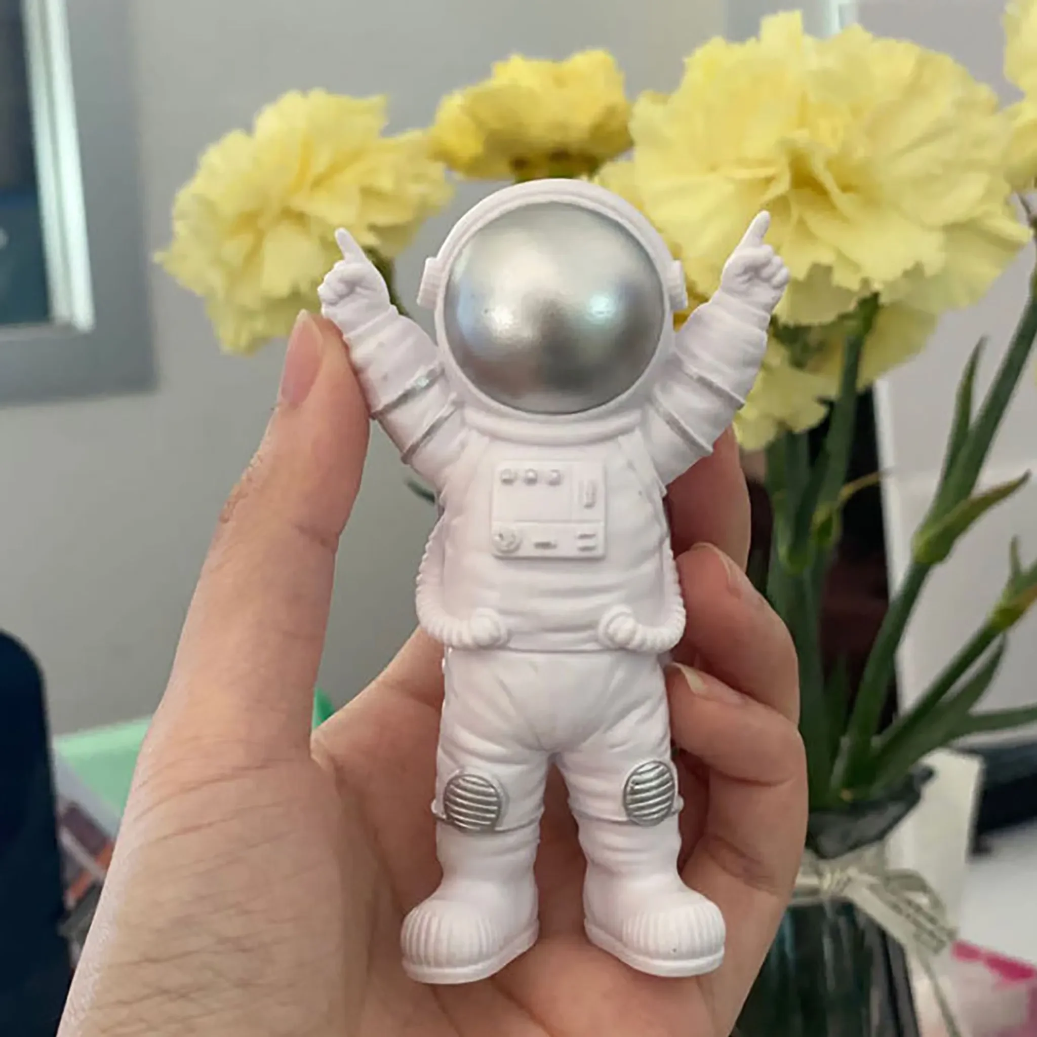 Dieses dreiteilige Figurenset im Nordic-Space-Look bringt Fantasie, Spiel und moderne Deko in das Kinderzimmer, Wohnzimmer oder Homeoffice. Die unterschiedlichen Posen der Astronauten verleihen jedem Arrangement eine verspielte Note und machen die Figuren zu einem charmanten Akzent auf Regalen, Schreibtischen oder als Torten-Dekoration bei Geburtstagen und Themenpartys.