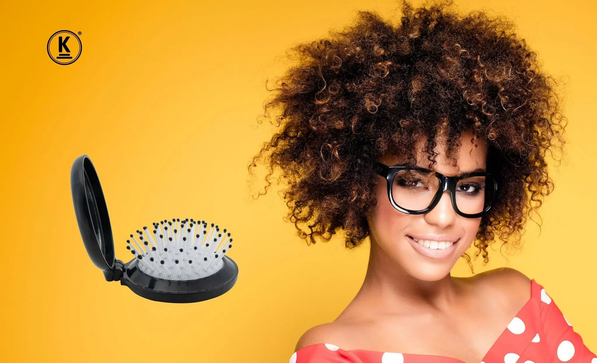 Die faltbare „K-Pro“ Taschenbürste mit integriertem Spiegel ist ein praktischer Styling-Begleiter für jede Tasche. Sie eignet sich ideal für Reisen, Büro, Schule und Unterwegs – und ermöglicht schnelles Auffrischen von Haar und Make-up in jeder Situation.