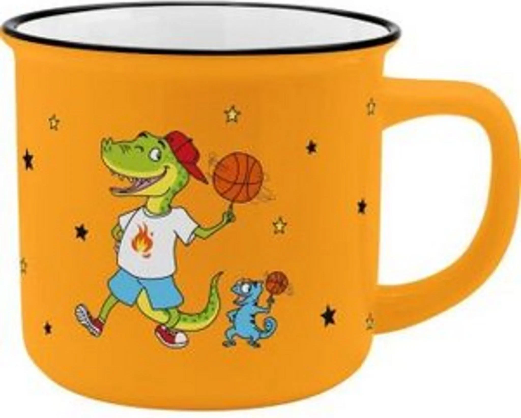 Dieser bunte Kinderbecher mit fröhlichem Dino-Motiv bringt gute Laune an den Frühstückstisch. Das liebevoll gestaltete Design macht den Becher schnell zum Lieblingsstück für Kindergarten- und Schulkinder – ideal für Kakao, Tee oder Milch.