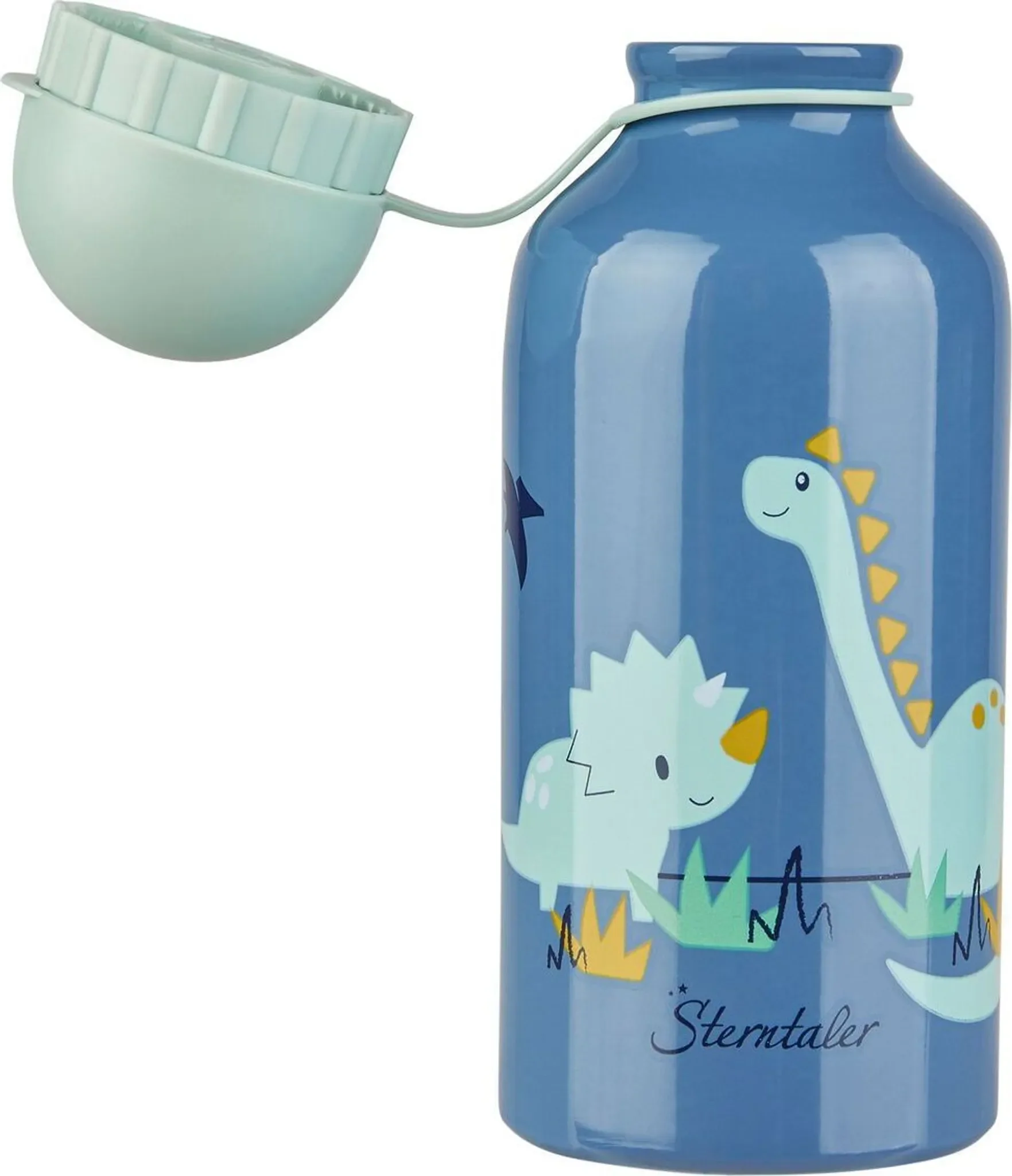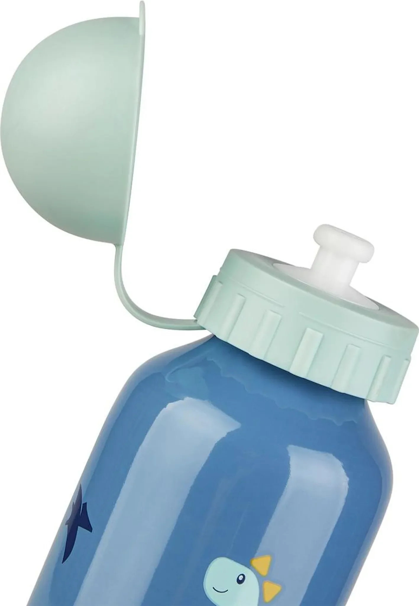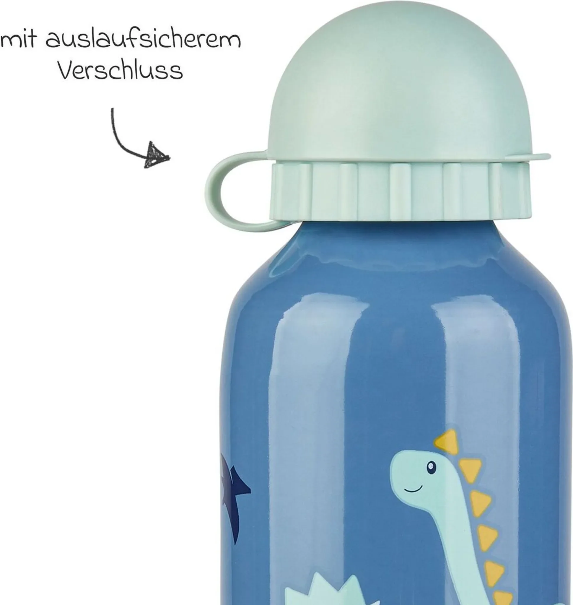 Der Drehverschluss mit Sporttrinköffnung lässt sich leicht öffnen und bietet zugleich einen auslaufsicheren Transport. Das Dinodesign in „mittelblau“ macht die Flasche zu einem echten Lieblingsstück für kleine Dino-Fans.
