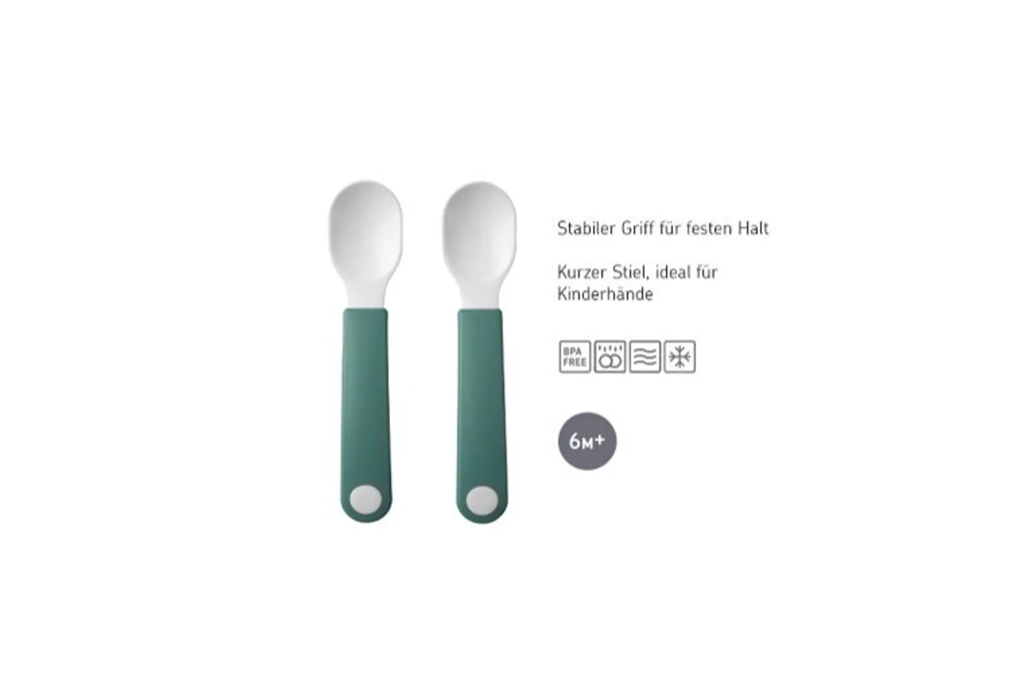 Highlights: Ergonomische Form für kleine Hände, abgerundete Kanten für mehr Sicherheit, leichtes Material, ideal für die Beikost- und Lernphase.