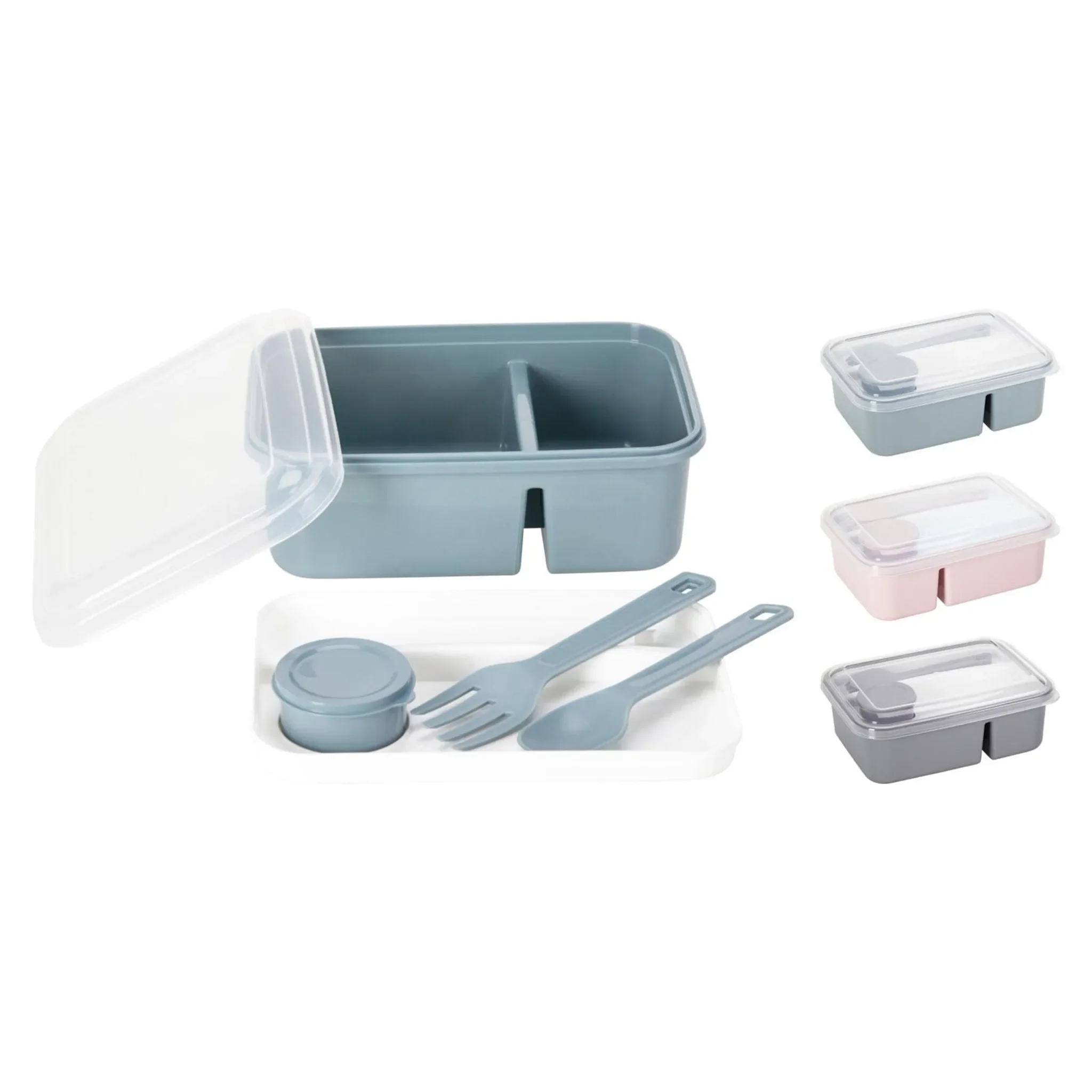 Lunchbox aus Kunststoff – 2 Fächer, mit Besteck & Soßendose