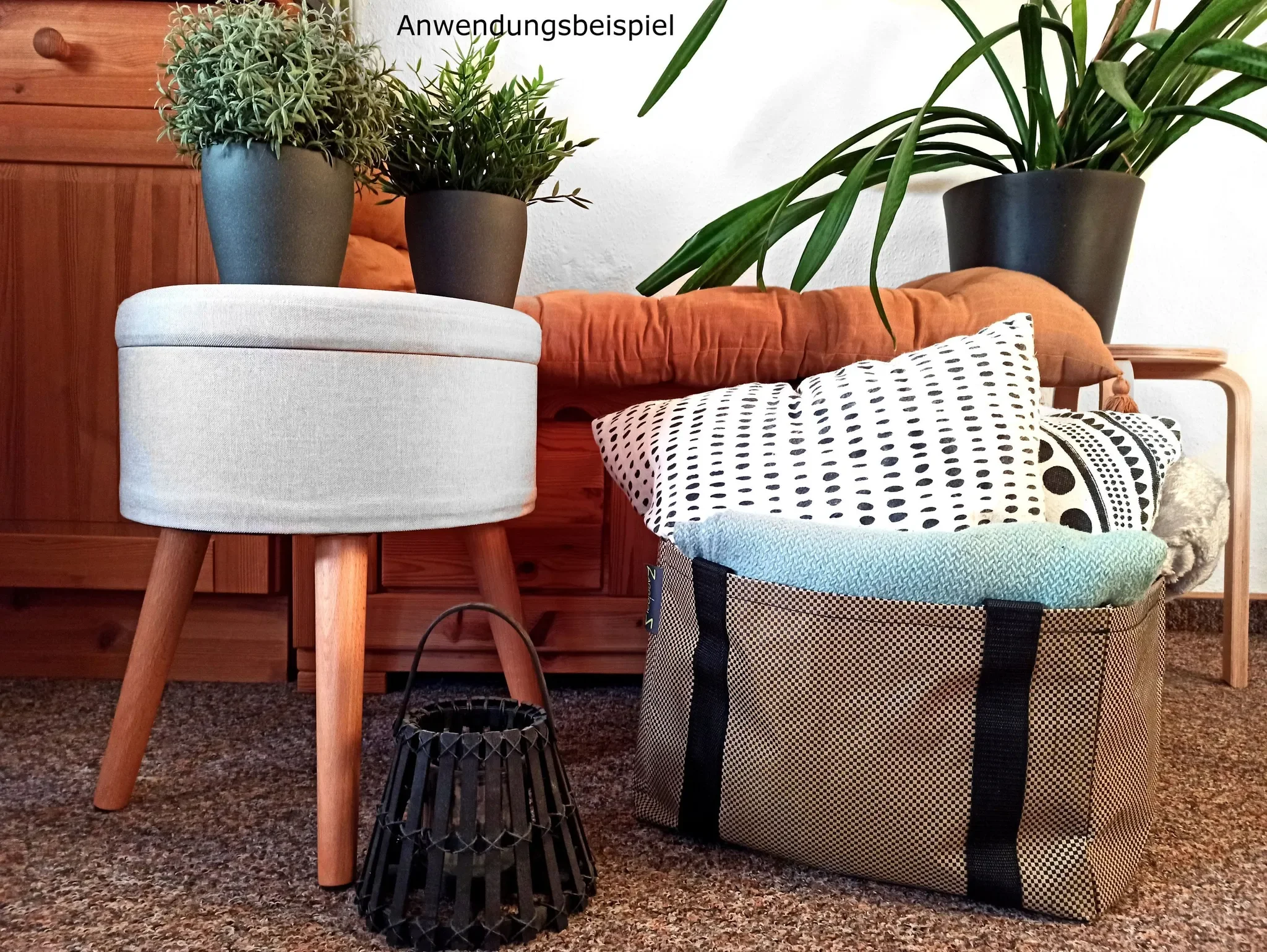 Diese robuste Aufbewahrungstasche ist ein echtes Multitalent: Ob als Wäschesack im Singlehaushalt, Spielzeugkorb im Kinderzimmer, Handtuch-Organizer im Bad, Pflanztopf im Treppenhaus oder als wetterfeste Aufbewahrung für Garten & Balkon – die Tasche bietet unzählige Einsatzmöglichkeiten.
