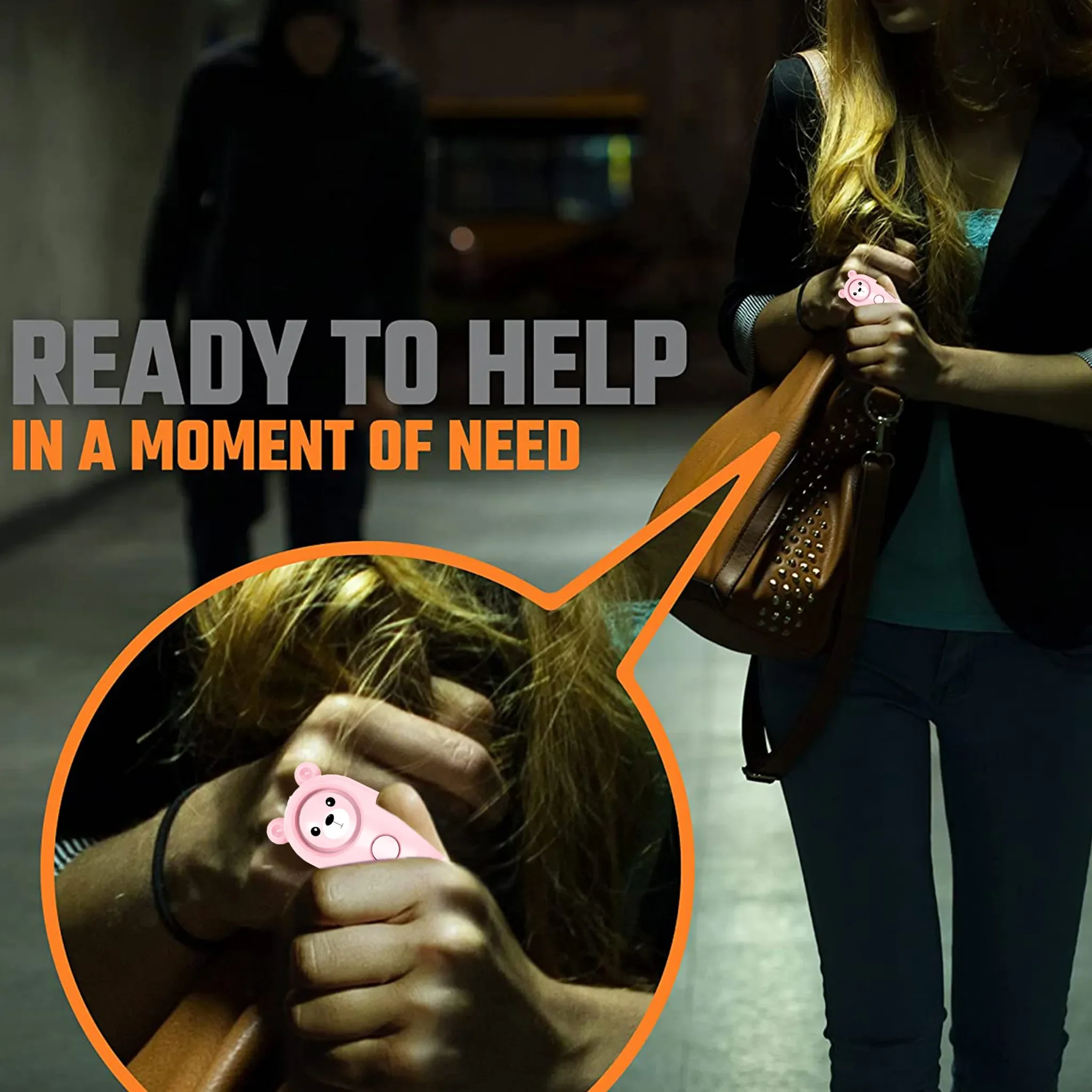 Dieser tragbare Sicherheitsalarm erzeugt einen extrem lauten Alarmton von bis zu 130 dB und hilft, im Notfall Aufmerksamkeit zu erregen und Angreifer abzuschrecken. Das süße Bären-Design in Rosa macht ihn zugleich unauffällig und alltagstauglich, ideal für Kinder, Mädchen sowie ältere Personen.
