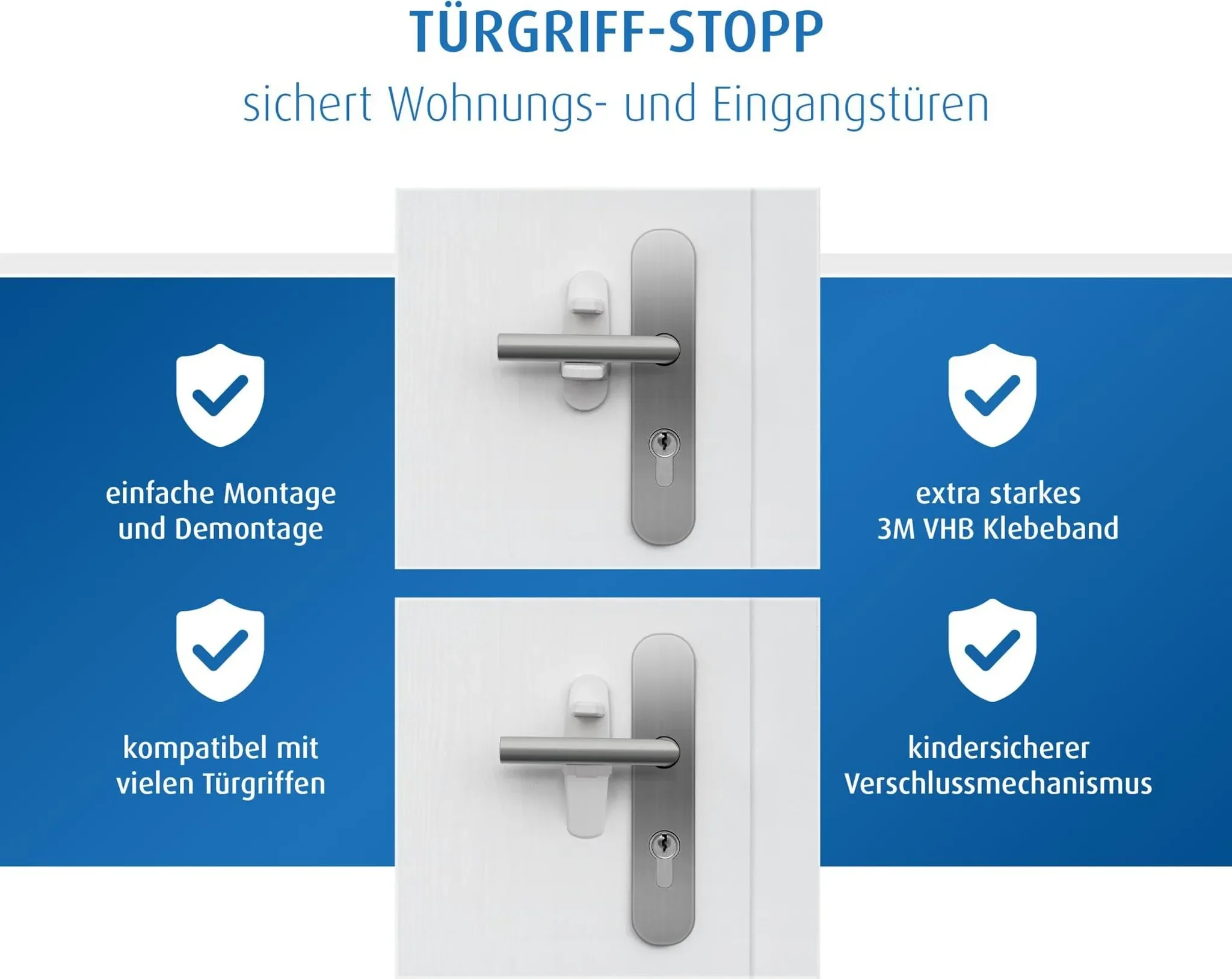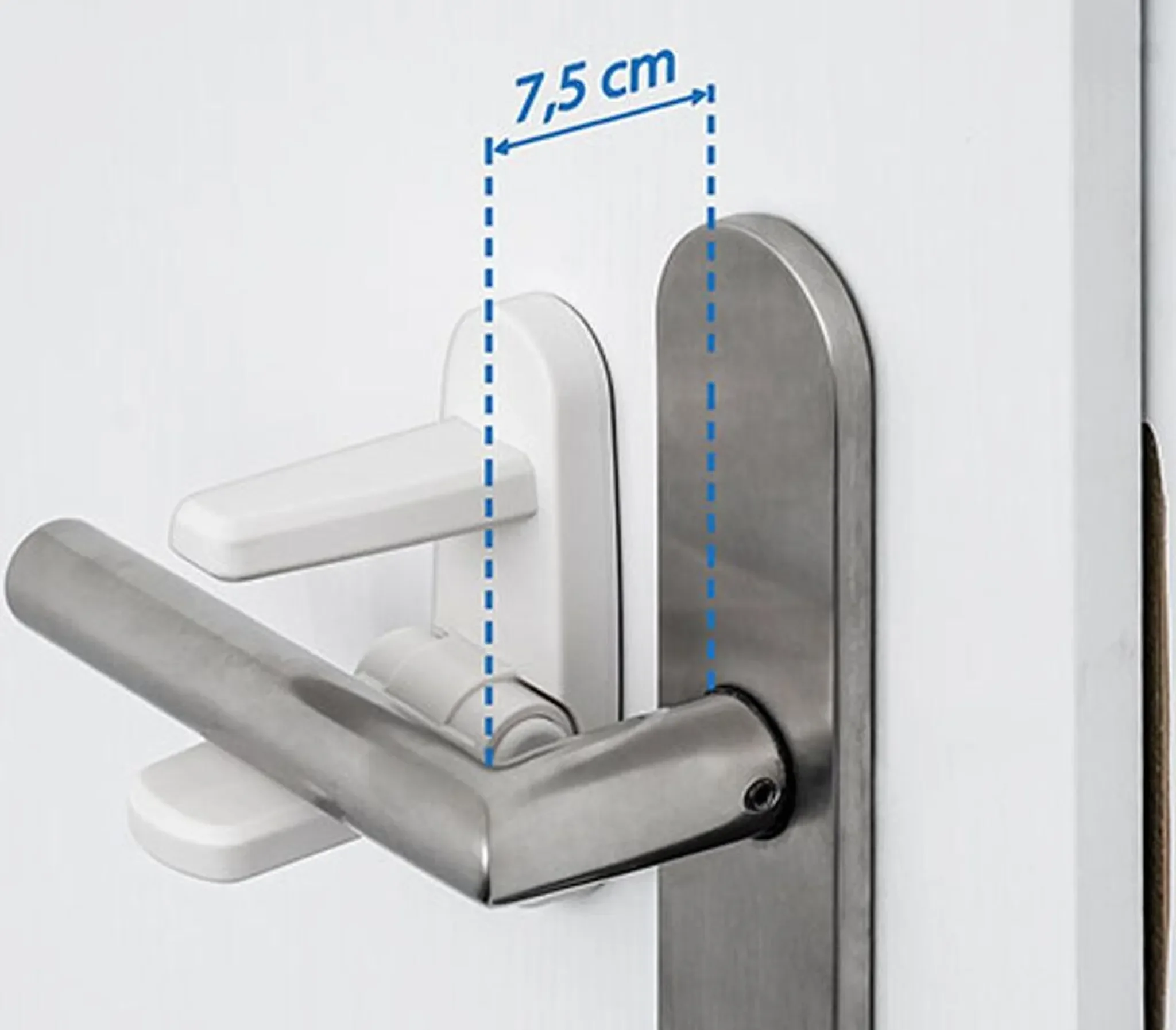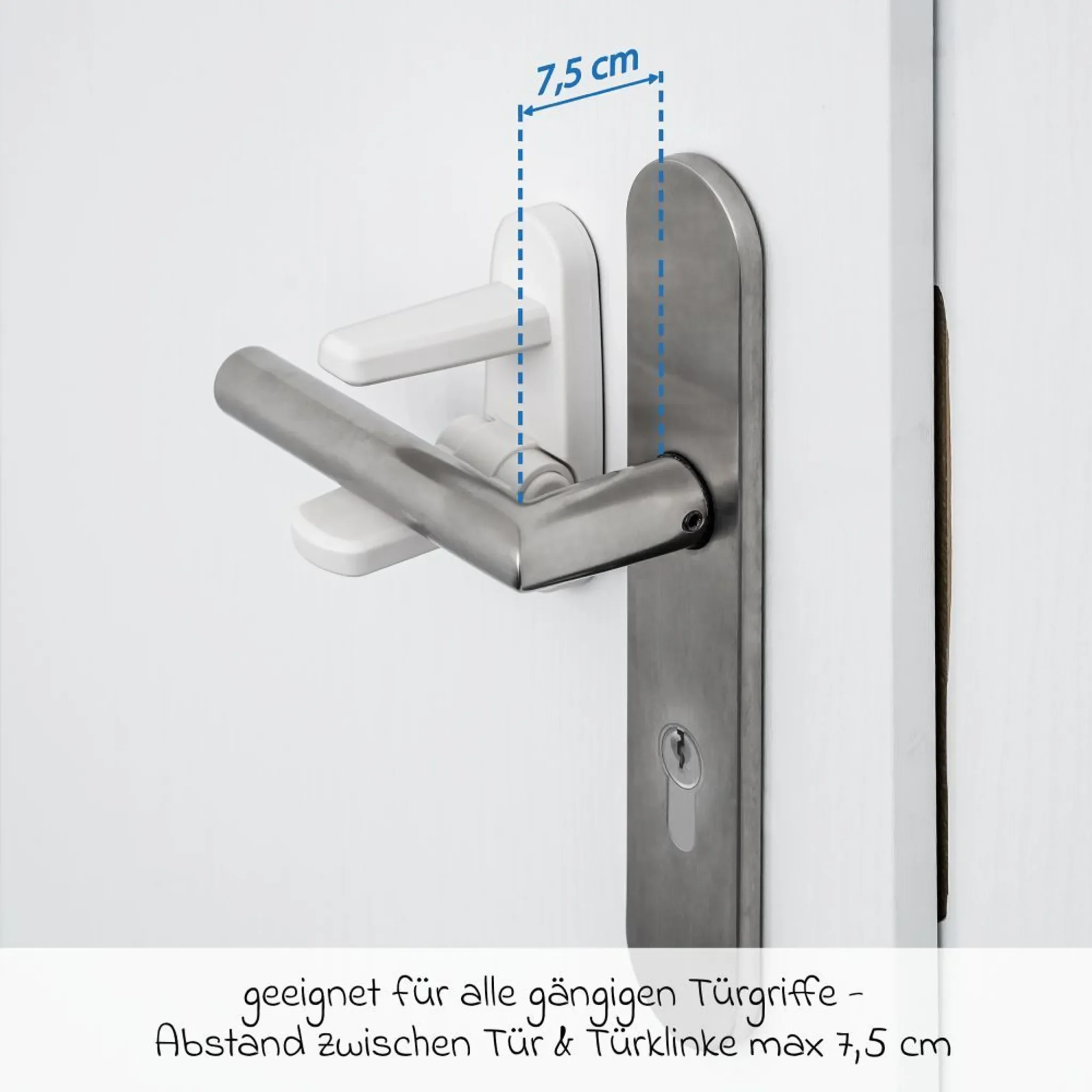 | Kompatibilität | Für gängige Türgriffe mit max. 7,5 cm Abstand Türblatt–Klinke |